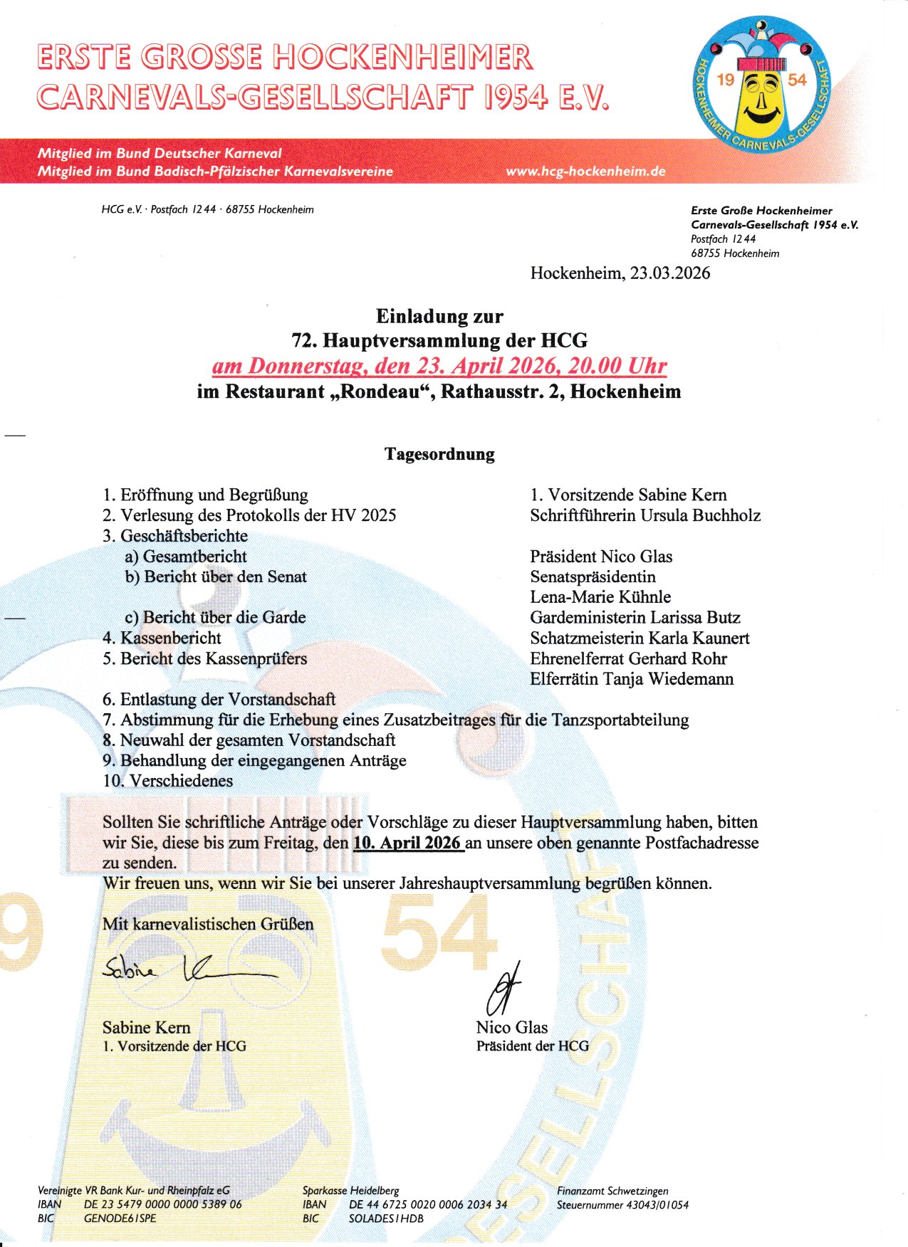 Herzlich Willkommen bei der 1. Großen Hockenheimer Carnevals-Gesellschaft 1954 e.V.
